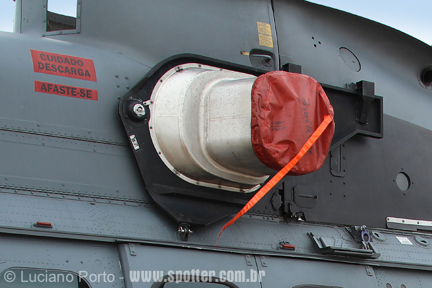 Os UH-15, UH-15A e AH-15B estão equipados com sistemas de autoproteção com lançadores de chaff e flare, RWR (Radar Warning Receiver), LWR (Laser Warning Receiver) e MAWS (Missile Approach Warning System) Foto: Luciano Porto - luciano@spotter.com.br |