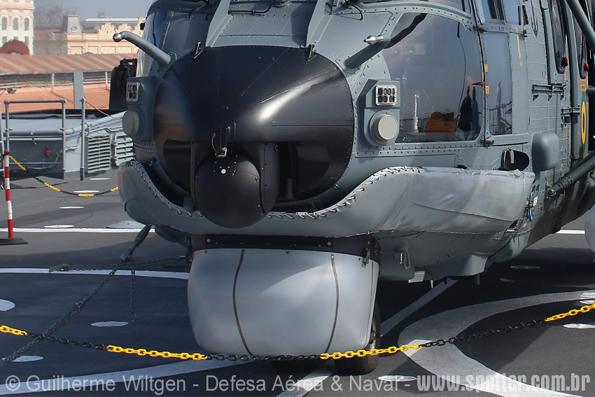 Os AH-15B estão equipados com o radar Telephonics AN/APS-143C(V)3 OceanEye, imageador térmico FLIR Systems AN/AAQ-22 Star SAFIRE III, sistemas de autoproteção com lançadores de chaff e flare, RWR (Radar Warning Receiver), LWR (Laser Warning Receiver), MAWS (Missile Approach Warning System) e TDMS (Sistema de Gestão Tática de Dados) Foto: Guilherme Wiltgen - wiltgen@defesaaereanaval.com.br |