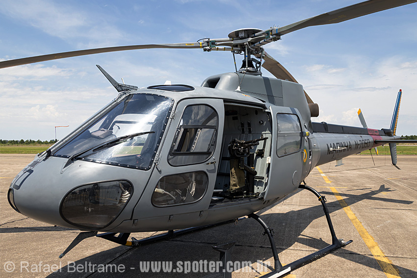Na imagem acima, o Helibras (Eurocopter) UH-12 Esquilo N-7050 do HU-51 Esquadrão Albatroz. Sediado na Base de Aviação Naval do Rio Grande, o HU-51 é o único esquadrão da Marinha do Brasil em toda a região Sul e tem a incumbência de realizar missões de patrulha fluvial, busca e salvamento (SAR), esclarecimento visual, transporte de tropa, evacuação aeromédica (EVAM), ligação e observação, apoio logístico, apoio às operações especiais, reconhecimento armado e ataque aéreo na área do Comando do Quinto Distrito Naval. Foto: Rafael Beltrame - rafaelrcb@gmail.com |