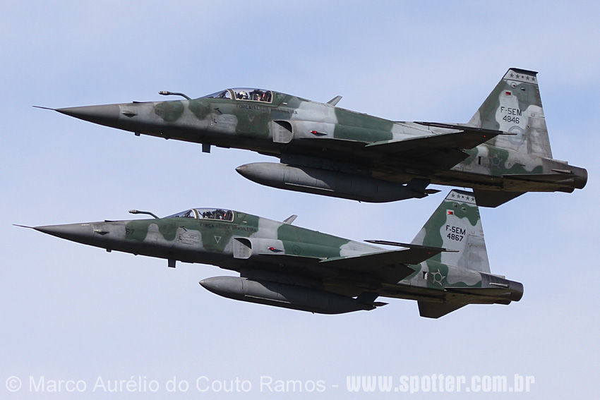 Na primeira atualização de 2025, publicamos 25 novas fotos na página do 1º/14º GAv Esquadrão Pampa, sediado na Base Aérea de Canoas, no Rio Grande do Sul. Durante o Exercício Multinacional CRUZEX 2024 o 1º/14º GAv utilizou seis Northrop/Embraer F-5EM Tiger II (FAB-4820, FAB-4834, FAB-4841, FAB-4846, FAB-4861 e FAB-4867) e um F-5EM Tiger II (FAB-4807), realizando missões de interceptação, muitas delas em parceria com os Boeing (McDonnell Douglas) F-15C Eagle da Força Aérea dos Estados Unidos. Foto: Marco Aurélio do Couto Ramos - makitec@terra.com.br |