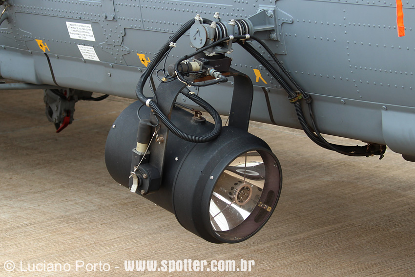 Os UH-15 e UH-15A podem ser equipados com um farol de busca Spectrolab SX-16 Nightsun com potência de 40 milhões de candelas e alcance médio de 1000 metros Foto: Luciano Porto - luciano@spotter.com.br |