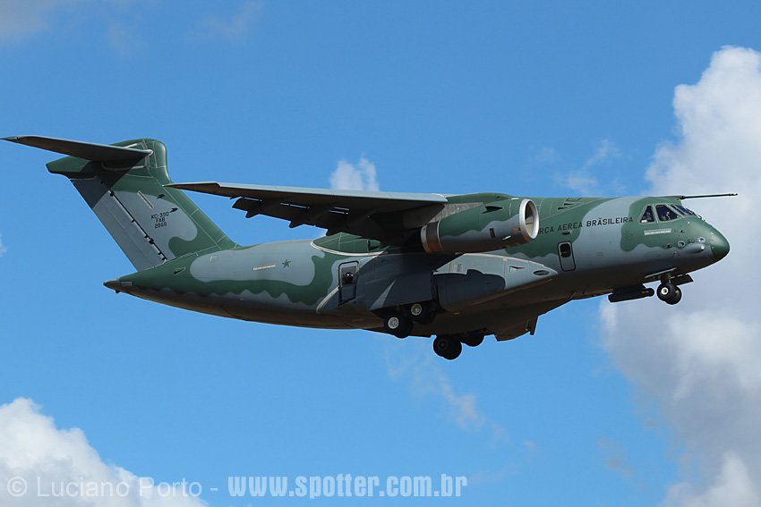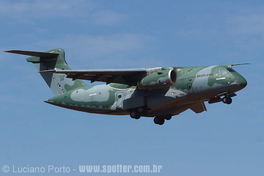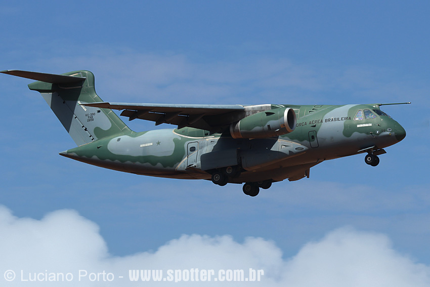Na imagem acima, o Embraer KC-390 Millennium FAB-2858 do Esquadrão Zeus pousando na Base Aérea de Campo Grande no dia 12 de fevereiro de 2026. A décima-primeira edição do Exercício Interamericano Cooperación será realizada na Base Aérea de Campo Grande entre os dias 16 a 27 de março, com a participação de militares e aeronaves de diversos países integrantes do SICOFAA (Sistema de Cooperação entre as Forças Aéreas Americanas): Argentina, Brasil, Bolívia, Canadá, Chile, Colômbia, Estados Unidos, Paraguai, Peru, República Dominicana e Uruguai. O objetivo do exercício é realizar ações conjuntas em cenários de catástrofes causadas por incêndios florestais, com missões de combate a incêndios em voo, transporte aéreo logístico, busca e salvamento e evacuação aeromédica. As missões de combate a incêndios em voo serão realizadas pelos KC-390 do Brasil, C-130H da Colômbia e C-27J do Peru. Foto: Luciano Porto - luciano@spotter.com.br |