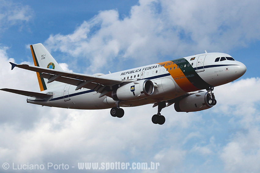 Na imagem acima, o Airbus VC-1 "Santos Dumont" FAB-2101 do GTE pousando na Base Aérea de Campo Grande, no Mato Grosso do Sul, trazendo o presidente Lula para a cerimônia de abertura da COP15 da CMS (15ª Reunião da Conferência das Partes da Convenção sobre a Conservação das Espécies Migratórias de Animais Silvestres), realizada em Campo Grande entre os dias 23 e 29 de março. Foto: Luciano Porto - luciano@spotter.com.br |